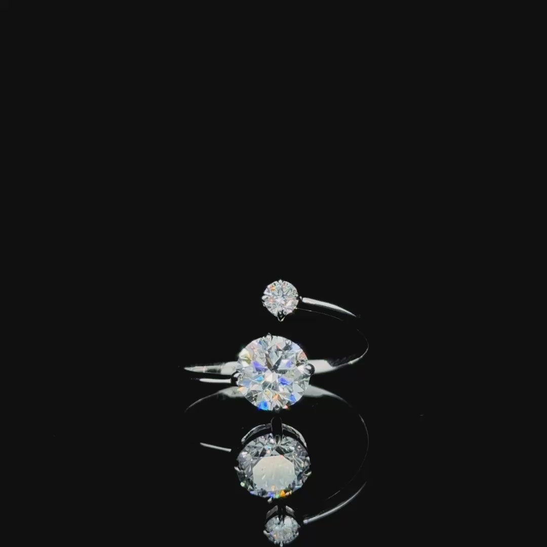 A modern ode to connection, this Toi et Moi ring features two round lab-grown diamonds totaling 1.20 carats. Set in a graceful bypass design, the 14K white gold band curves delicately around each stone, symbolizing harmony between two distinct souls.
