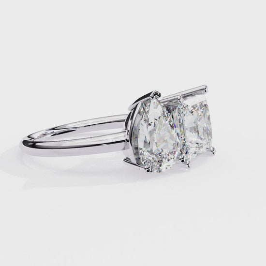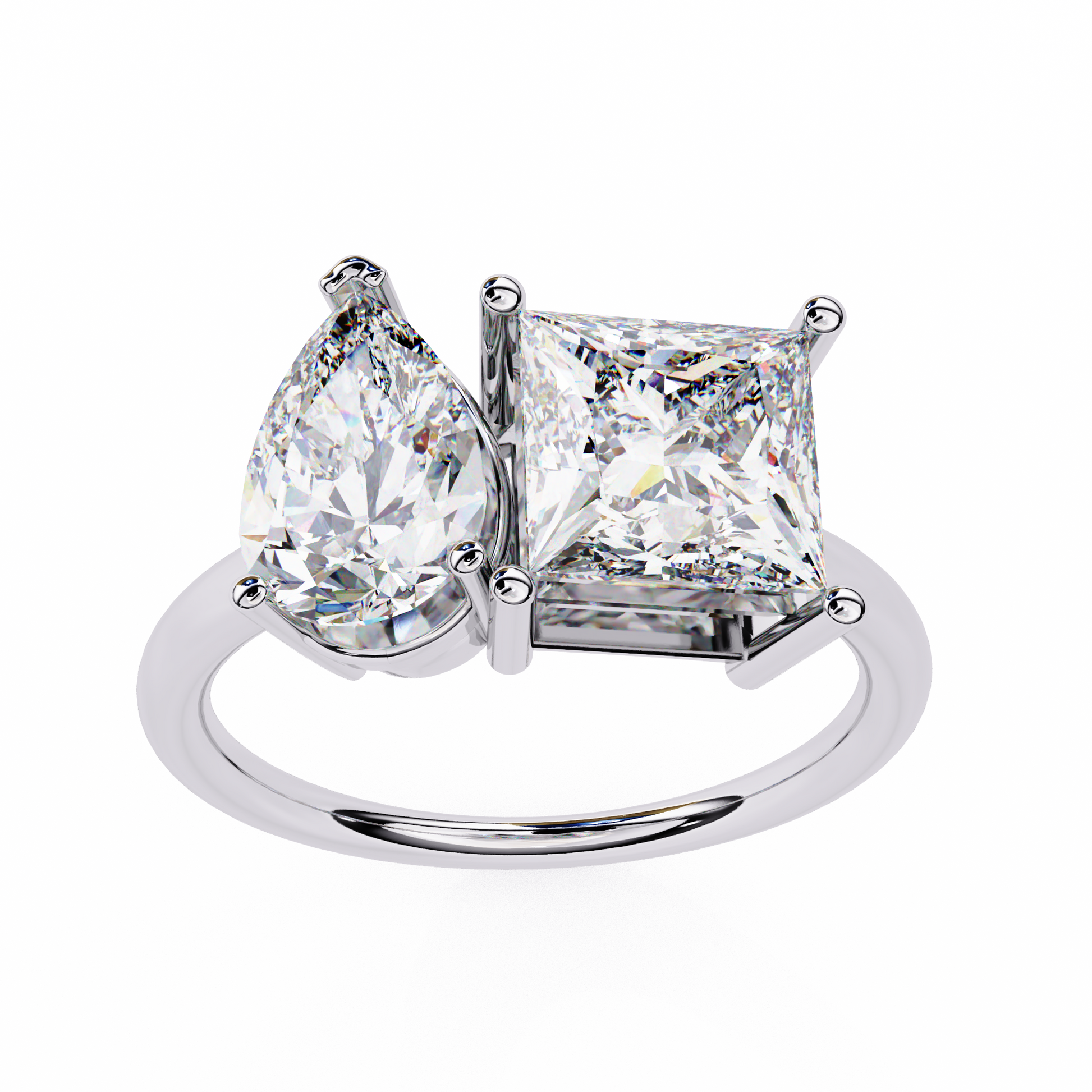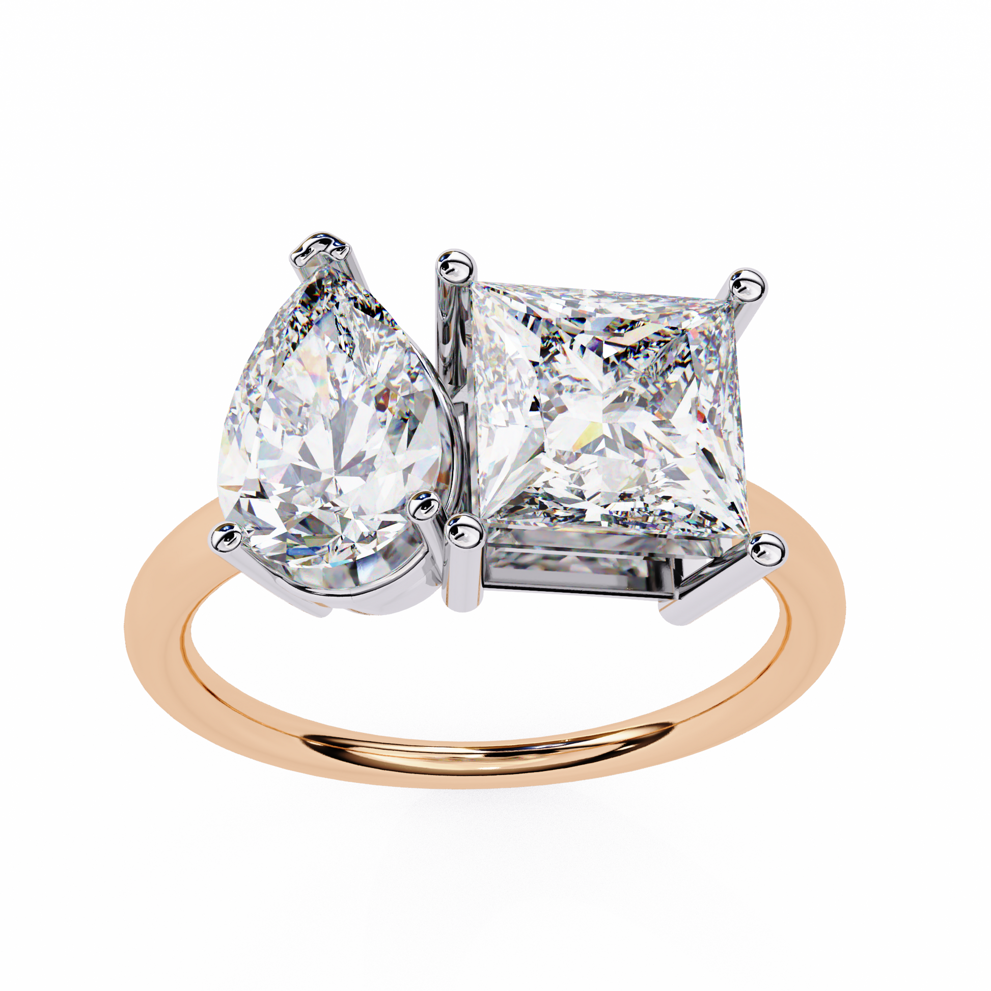 The Toi Moi Fleur ring beautifully pairs a pear-cut and a princess-cut lab-grown diamond in an elegant open-band style. Symbolizing two distinct forms in harmony, this asymmetrical design evokes a floral-like balance—ideal for modern romantics.