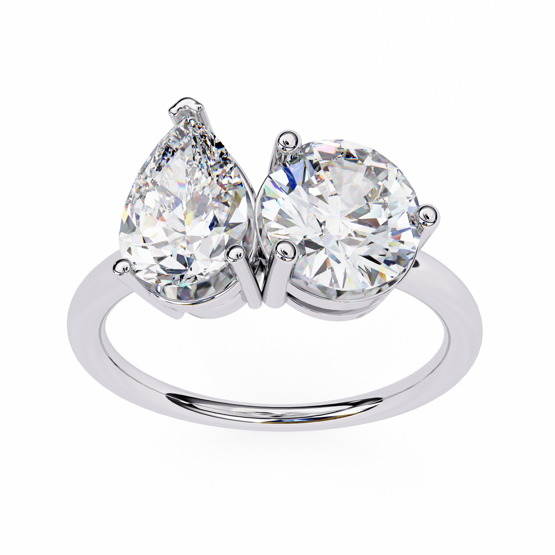 The Toi Moi Pear ring showcases a pear-cut and a round lab-grown diamond set in a graceful bypass design. Celebrating individuality and connection, this expressive piece reflects the essence of “you and me” with brilliance and balance.