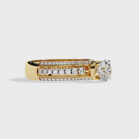 Specifications: • Style Number: RING127 • Gold Purity: 14K Gold (Yellow, White, or Rose) • Gold Weight: 3.7 grams (14K), 4.2 grams (18K) • Diamond Type: Lab-grown Diamond • Diamond Shapes: Round • Diamond Count: 71 stones • Center: 1 pc (0.75 ct) • Accent: 70 pcs (0.49 ct total) • Total Diamond Weight: 1.24 carats • Diamond Color: D-E-F • Diamond Clarity: VVS-VS