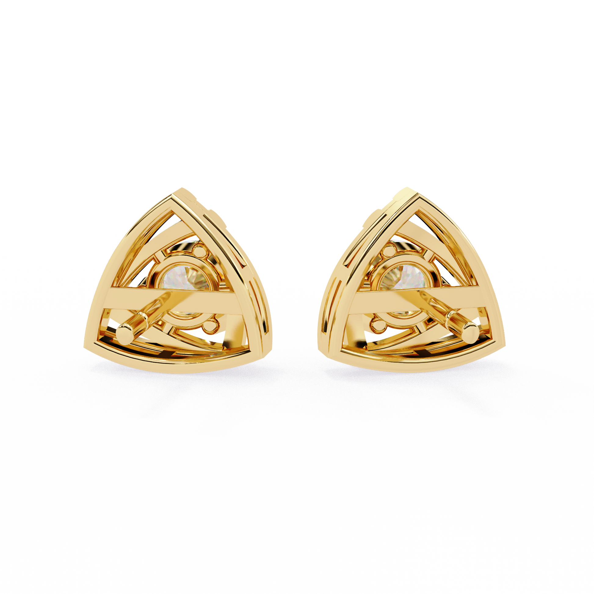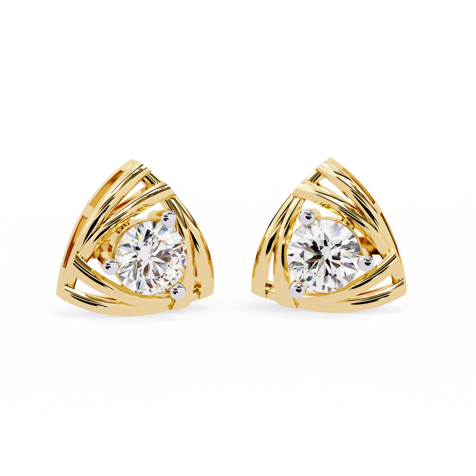 The Trinity Wrap earrings feature a captivating triangular silhouette wrapped in layered gold that cradles a 4.4mm round lab-grown diamond at the center of each stud. Designed with modern architectural finesse, these 9mm earrings are compact yet powerful, showcasing a 0.66 carat total diamond weight across both studs. A bold everyday piece with refined luxury.