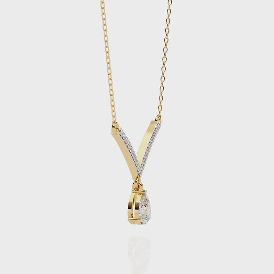 V-Curve Pear Drop – Diamond Pendant Necklace in 14K Gold