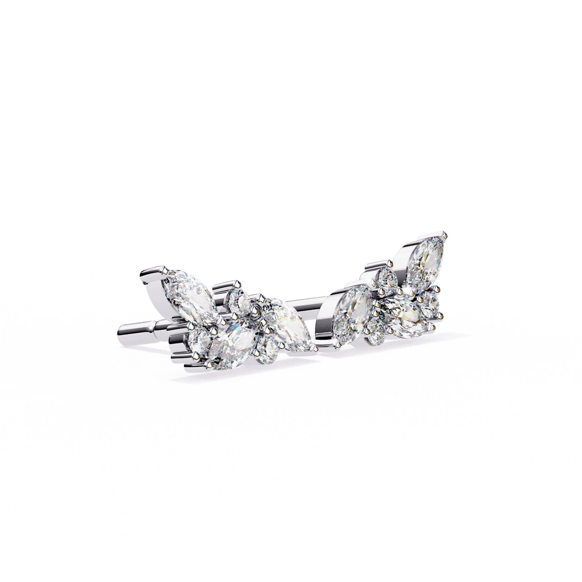 The Whisper Bloom earrings feature a delicate combination of marquise and round lab-grown diamonds, arranged in a soft cluster for subtle sparkle. With a minimalist floral feel, these studs bring understated charm to any look—day or night.